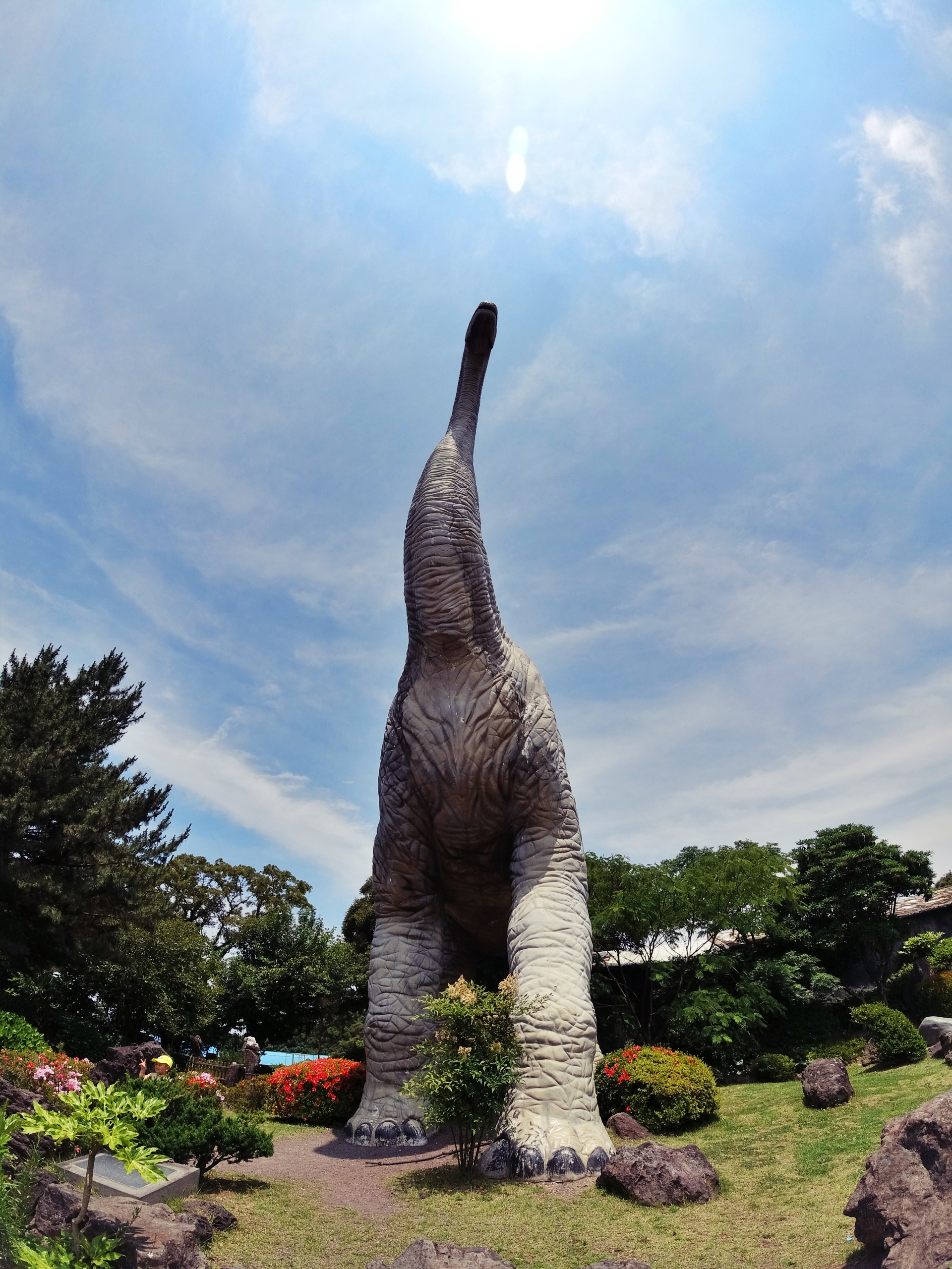 길을 조금 올라가면 제주공룡랜드의 상징이기도 한 초식공룡 브라키오사우르스를 만날 수 있습니다. 이 브라키오사우르스는 실제 공룡의 크기 그대로 만든 모형이라 고개를 하늘로 향해 전체의 모습을 눈에 담을 수 있습니다. 브라키오사우르스의 모습을 보면 실제 공룡의 크기가 얼마나 거대했는지를 확실하게 느낄 수 있답니다.