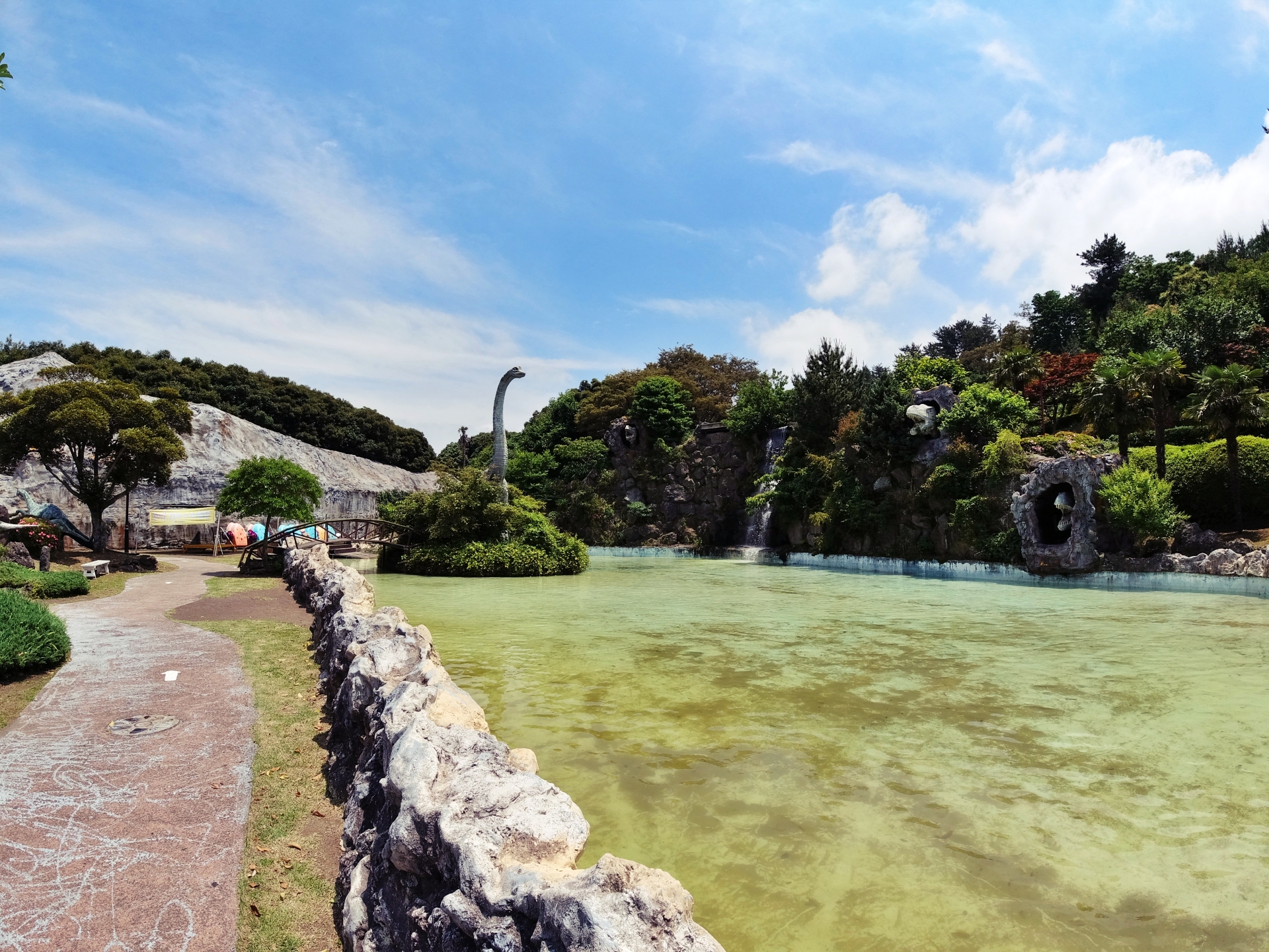 브라키오사우르스를 지나면 바로 만날 수 있는 평화공원! 평화공원에서도 다양한 공룡들을 볼 수 있습니다. 아이들이 공룡친구들과 함께 사진을 찍기 좋은 곳이에요. 또한 평화공원에 있는 미니보트장에서는 페달보트를 직접 탈 수도 있답니다. 보트를 타고 작은 폭포 근처로 가면 시원함을 느낄 수도 있어요.