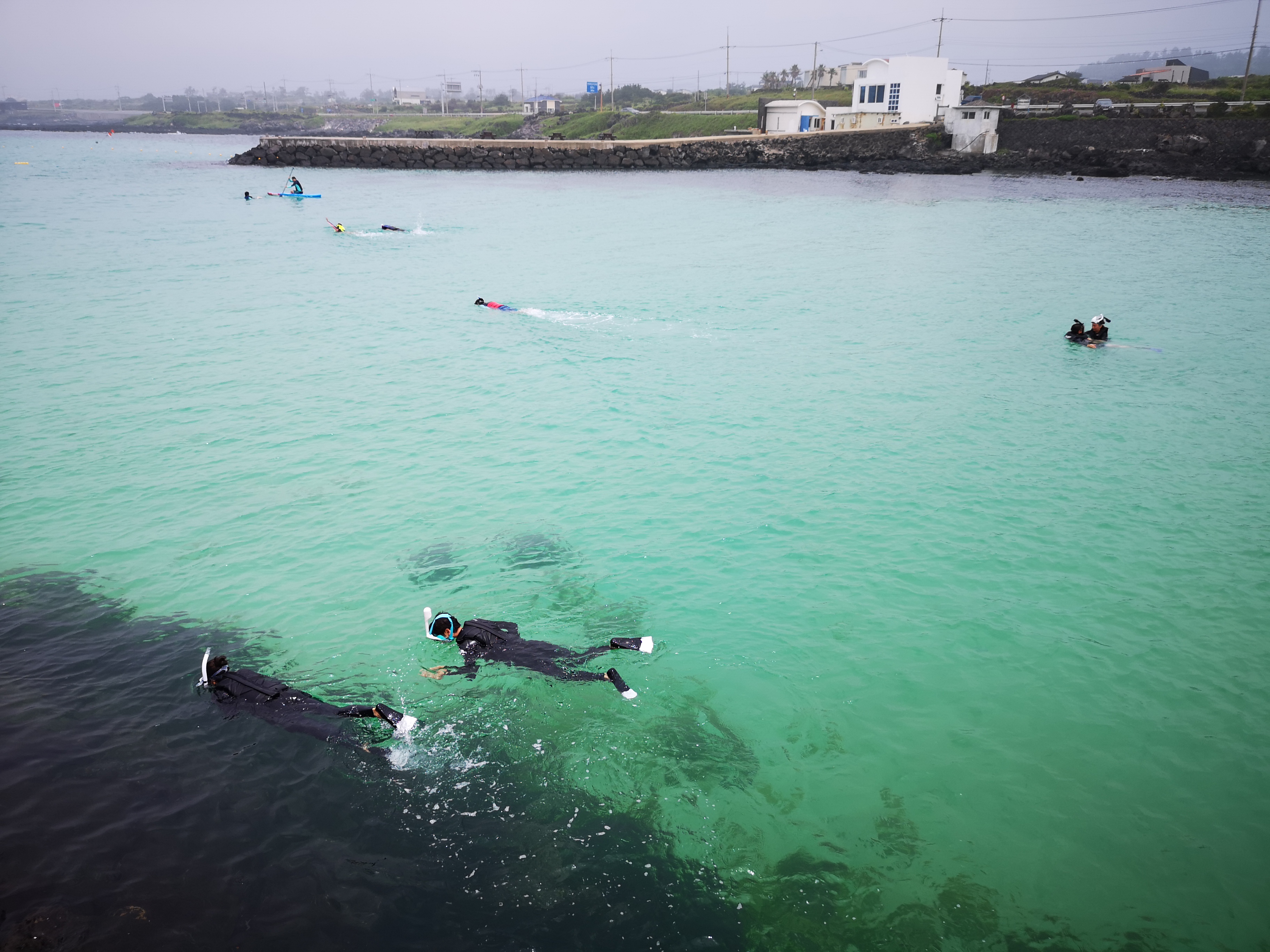 하와이·괌 같은 해외에서만 스노클링을 즐겼다면 이제는 제주에서 즐겨보자. 제주 한경면 판포리에 있는 판포포구에 가면 제주의 맑은 바닷속을 탐험할 수 있다. 판포포구는 바다지만 과거에 포구로 사용했던 곳이라 방파제가 있다. 이 덕에 매서운 파도가 두려워 스노클링을 즐기지 못했던 사람도 포구 안쪽에서 안전하게 스노클링을 만끽할 수 있다. 스노클링 장비가 없어도 걱정 뚝. 포구 근처에 있는 판포리청년회나 주변 상점에서 장비를 대여해 준다.
