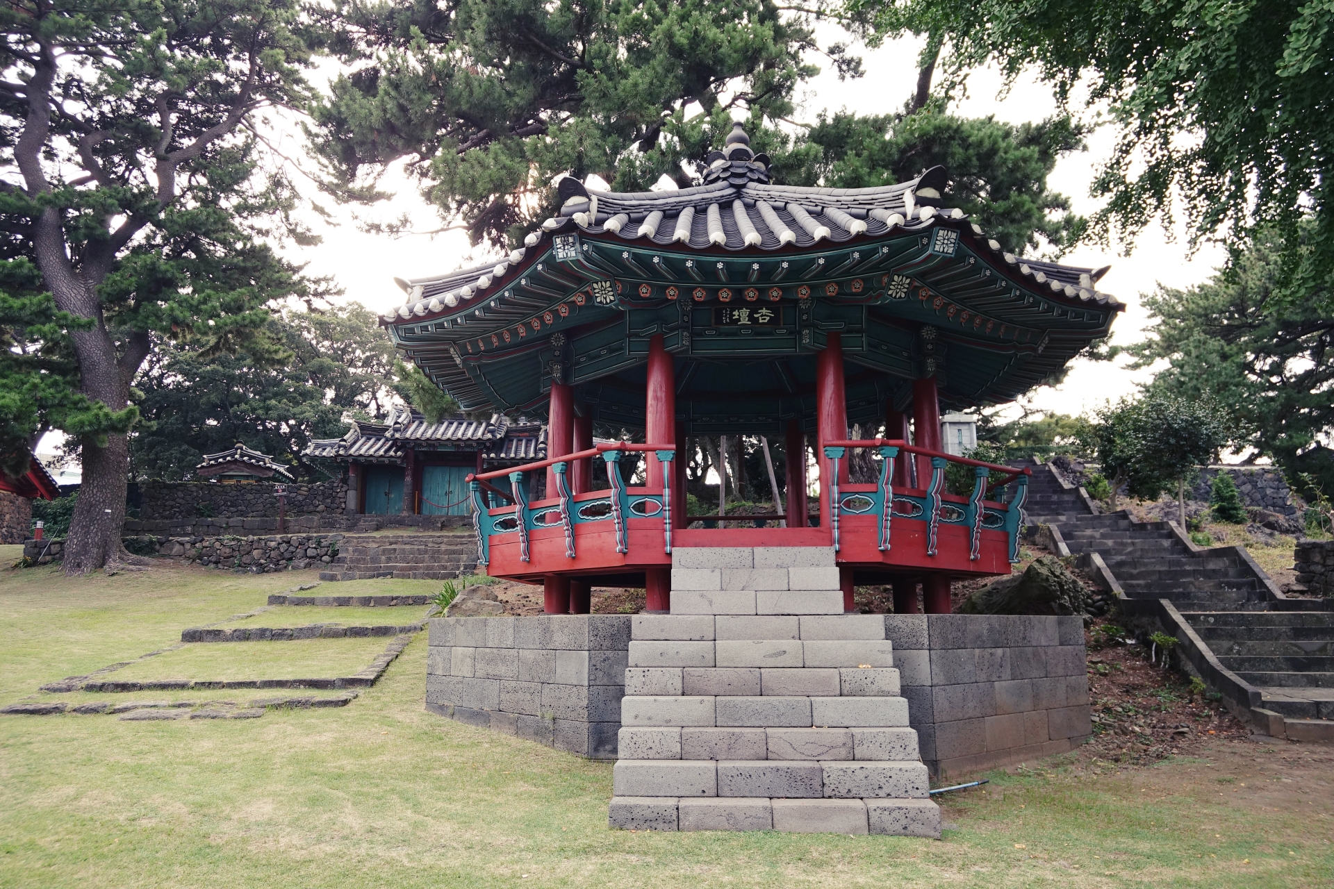 안쪽으로 들어서면 보이는 대성전은 제주향교에서 가장 큰 전각입니다. 공자를 비롯해 여러 성현들의 위패를 모시고 있는 곳으로 멀리서 바라봐도 무척 아름다운 모습이 느껴집니다.