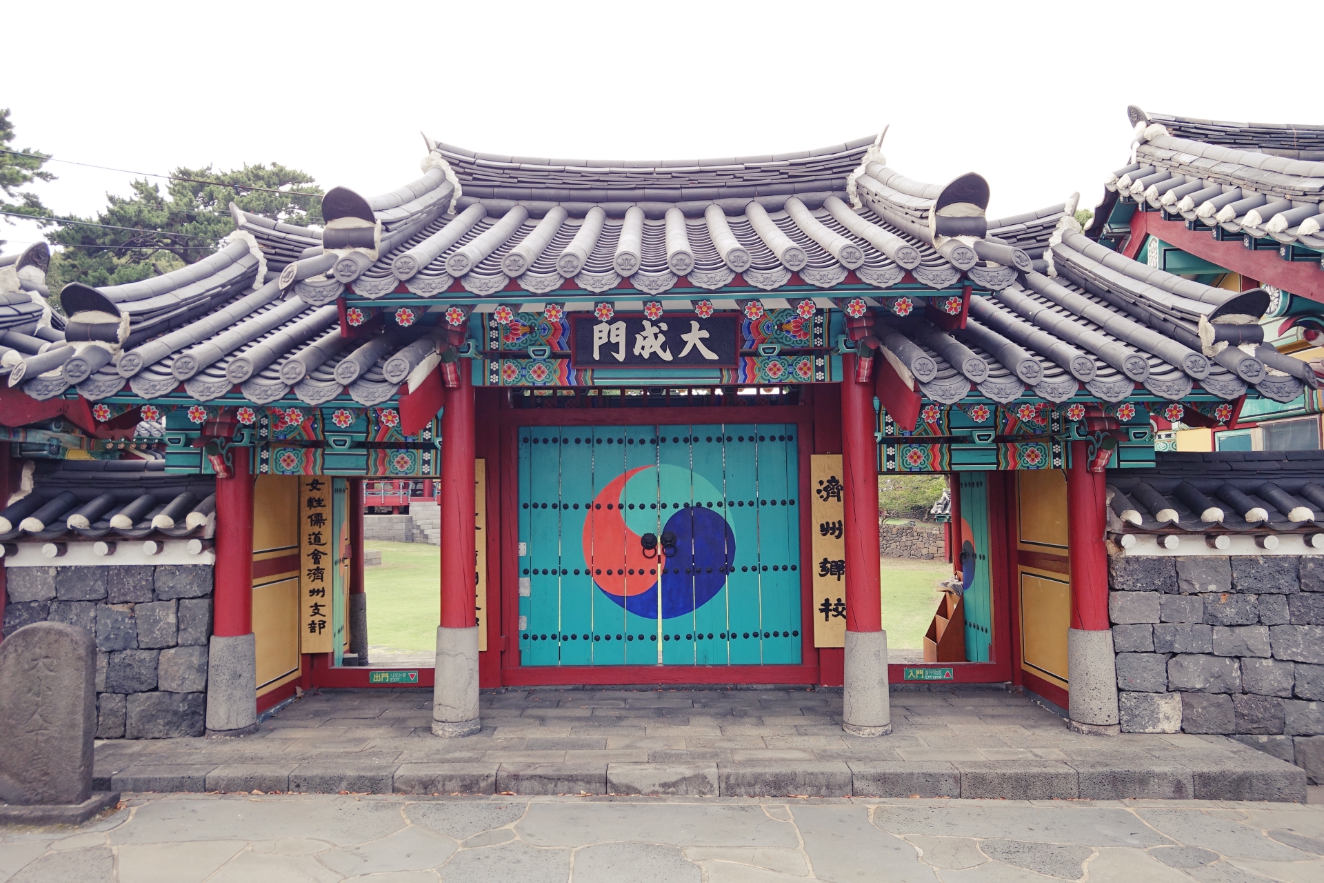 제주향교의 정문인 대성문, 제주 최초의 교육기관이라고 하기엔 소박한 대문의 모습입니다. 딱 한사람이 드나들 정도의 크기로 오른쪽은 입구, 왼쪽은 출구로 과거나 지금이나 규칙을 잘 지켜서 들어오고 나가야 한다고 합니다.