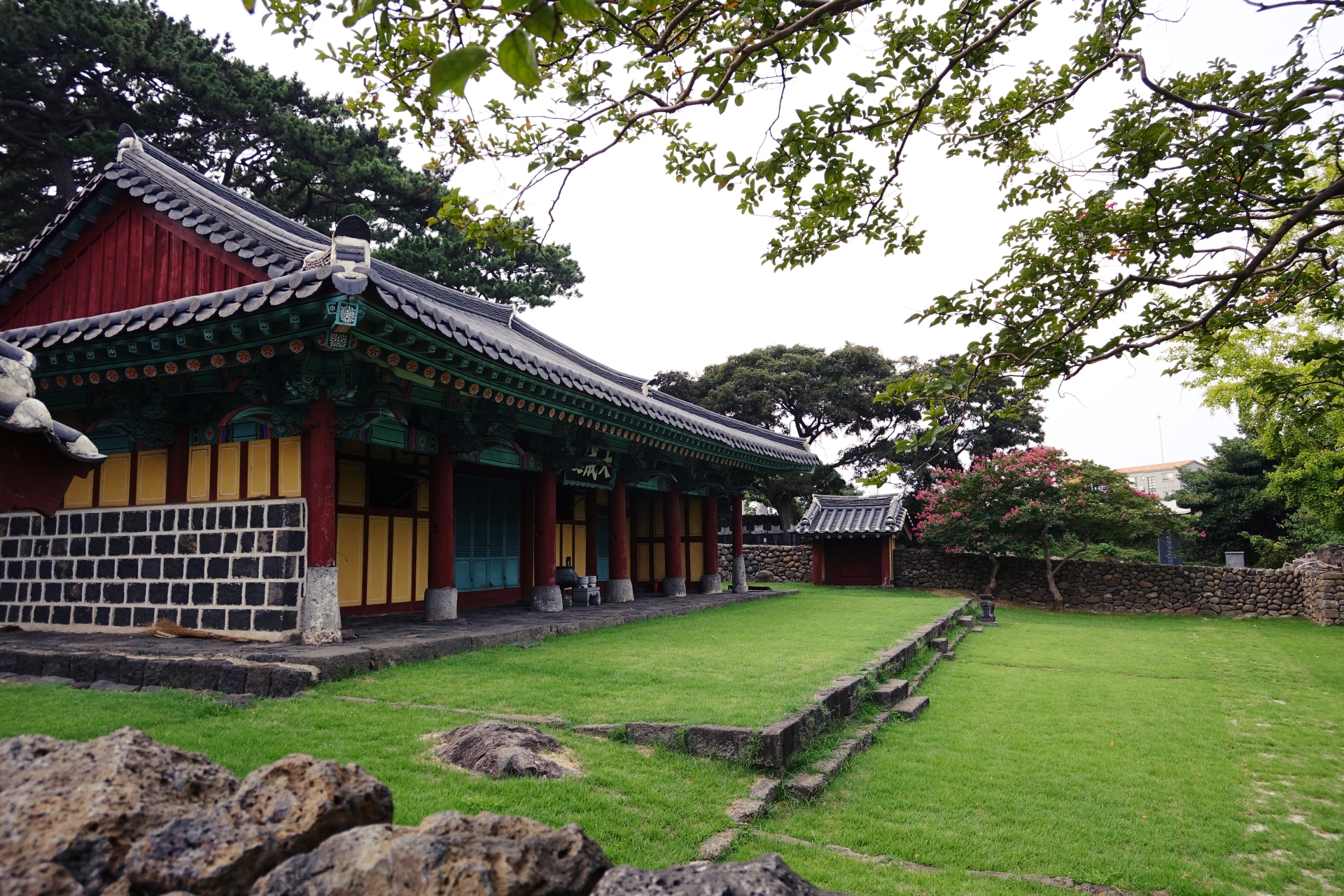 대성문을 지나면 명륜당이 눈에 들어옵니다. 초록잔디 위에 있어서 그런지 더욱 멋지게 느껴집니다. 제주향교는 과거 제주목에 있었던 3개의 향교 중 규모가 가장 큰 향교이기도 합니다.