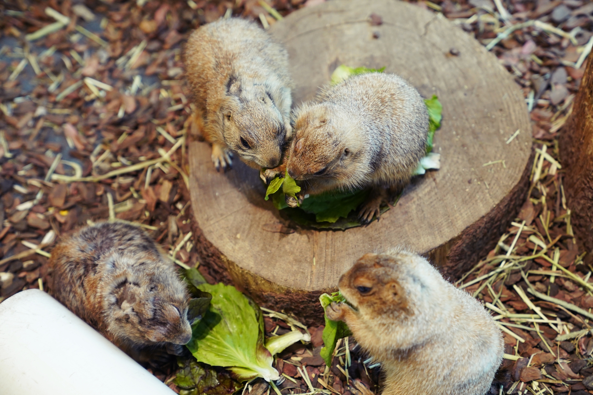 세 번째 친구들은 바로 프레리독과 기니피그예요! 바로 이웃집에 살고 있기에 함께 소개한답니다. 개(Dog)도 아닌데 왜 프레리독(Prairie Dog)이라 불릴까요? 아메리카 대륙에 처음 온 스페인 정복자들이 북미 원주민들과 같이 생활하던 프레리독들이 짖는 모습을 보고 신대륙의 '개'라고 오인한 것에서부터 유래되었다고 하니 무척 신기하면서도 재밌습니다. 옆집에 사는 기니피그는 보기에도 대가족이지요? 애완동물로도 인기가 많은 기니피그는 원래 집단생활을 하는 동물로 발달된 사회구조를 이루고 있다고 해요.