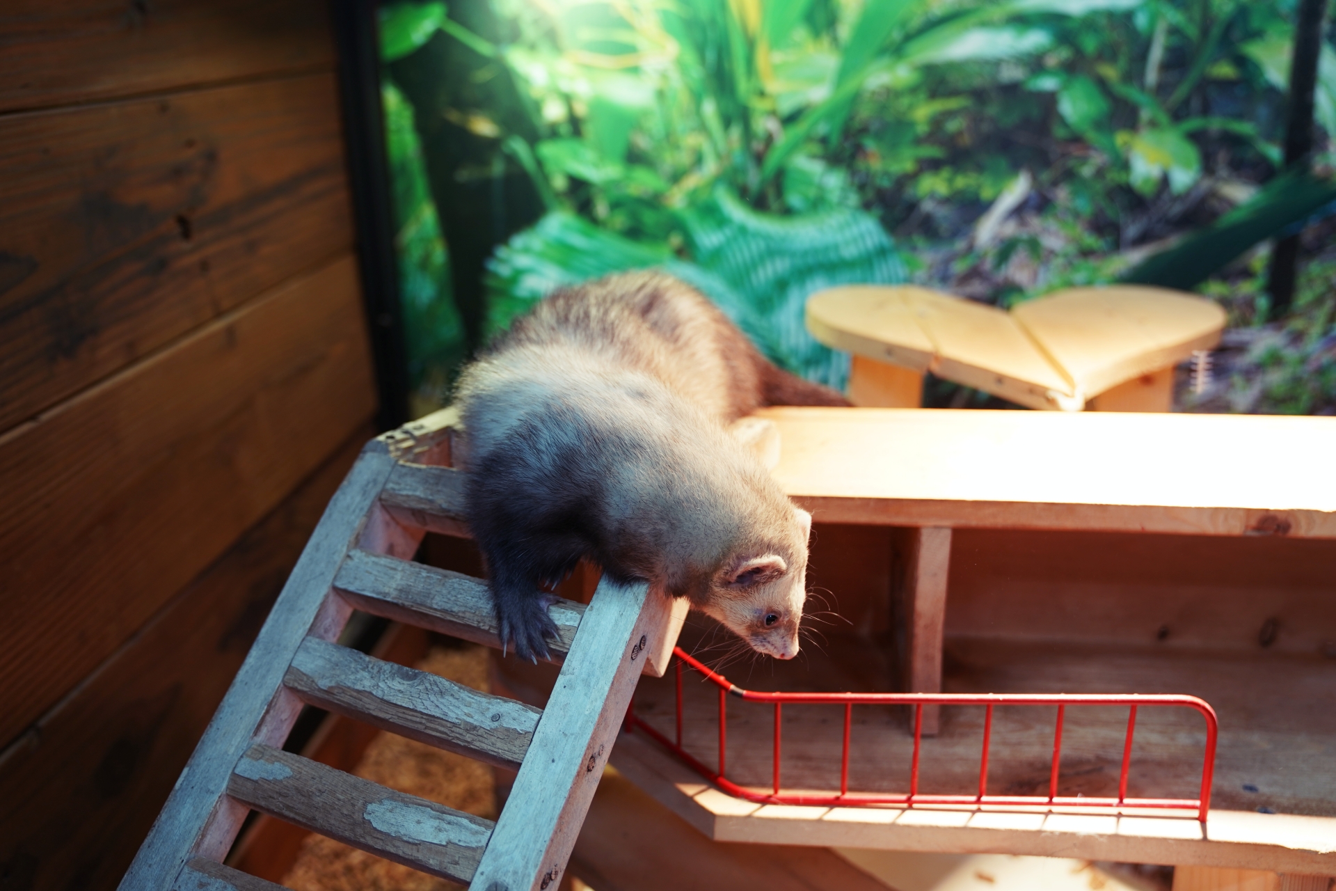 다음 친구는 페럿! 예전엔 토끼 사냥에 쓰였을 정도로 민첩한 동물이지만 현재는 애완용으로 키우는 사람들도 많다고 합니다. 앵무새사파리에서 활동하는 모습을 가장 보기 힘든 동물친구 중에 하나랍니다. 야행성인 페럿은 하루 중 20여 시간을 자고 4시간 정도만 적극적으로 활동한다고 해요.