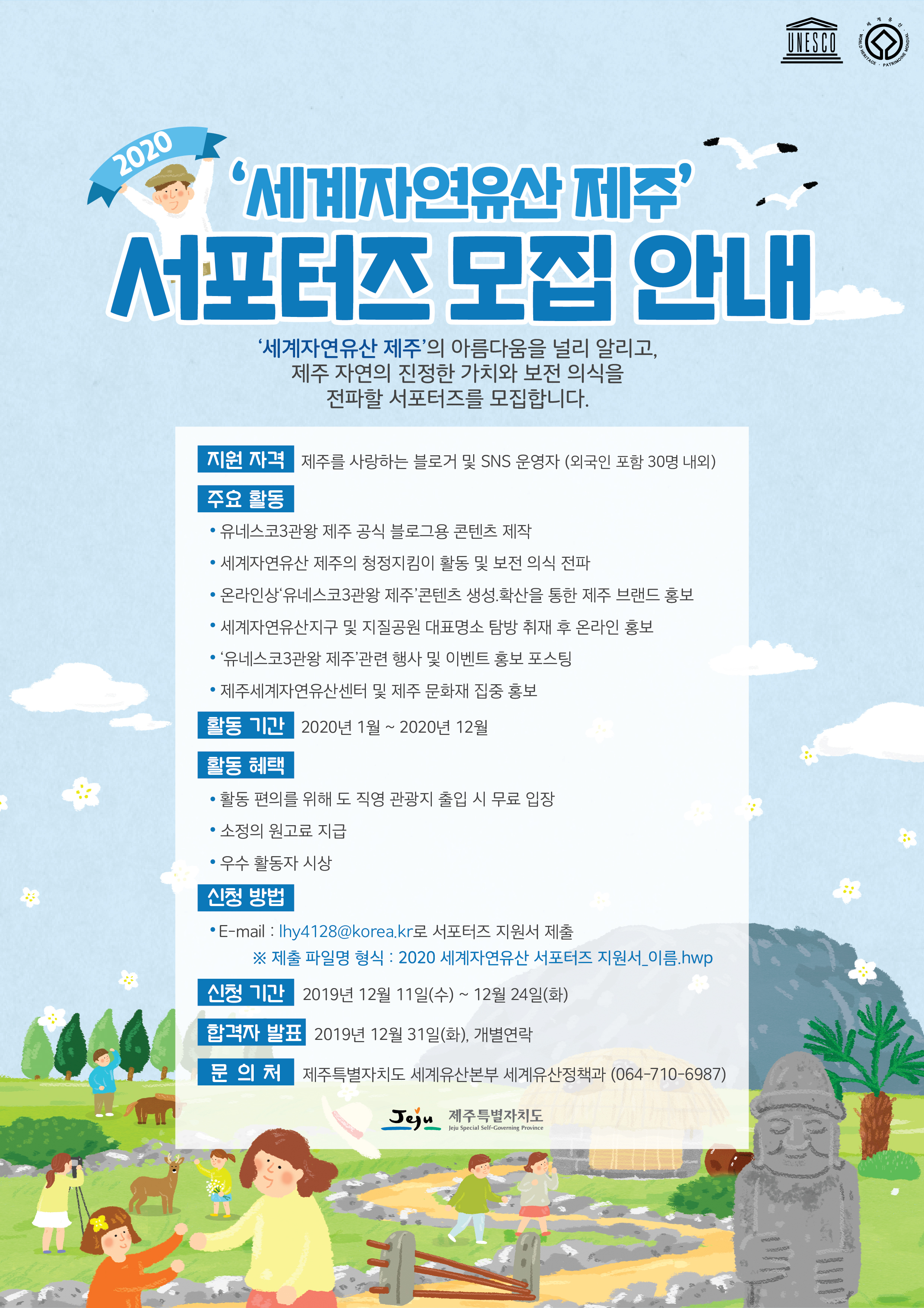 2020년 세계자연유산 제주 서포터즈를 모집합니다! 본문