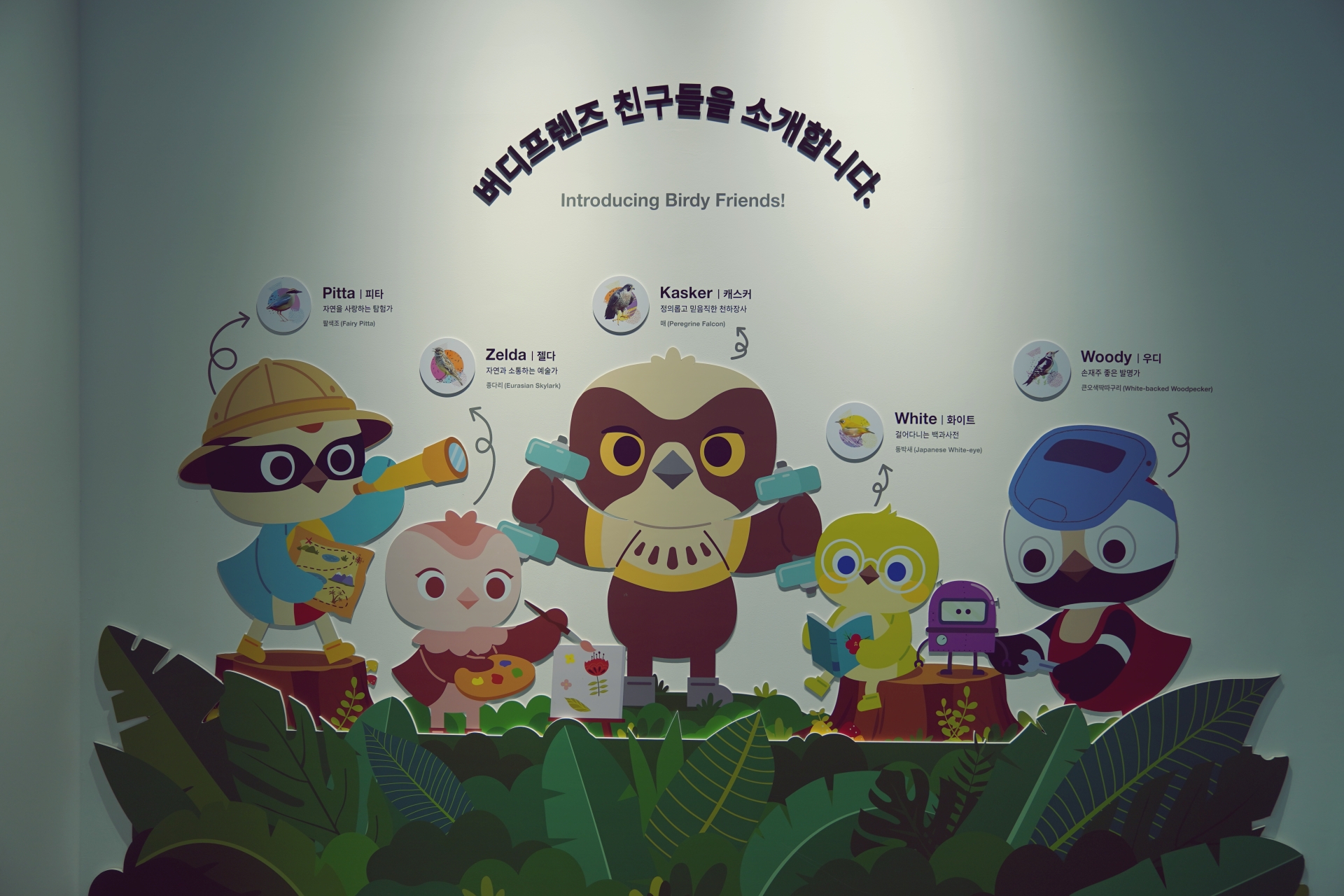 거멍숲의 속삭임에서는 자연의 소리에 집중할 수 있는 공간입니다. 버디프렌즈의 모티브가 된 다섯 마리의 새뿐만 아니라 제주의 숲 속에 살고 있는 다양한 새소리를 들어볼 수 있답니다. 귀를 기울이고 숲 속의 새소리를 들어보세요~