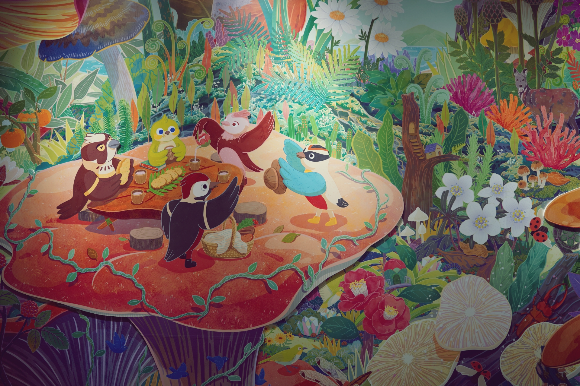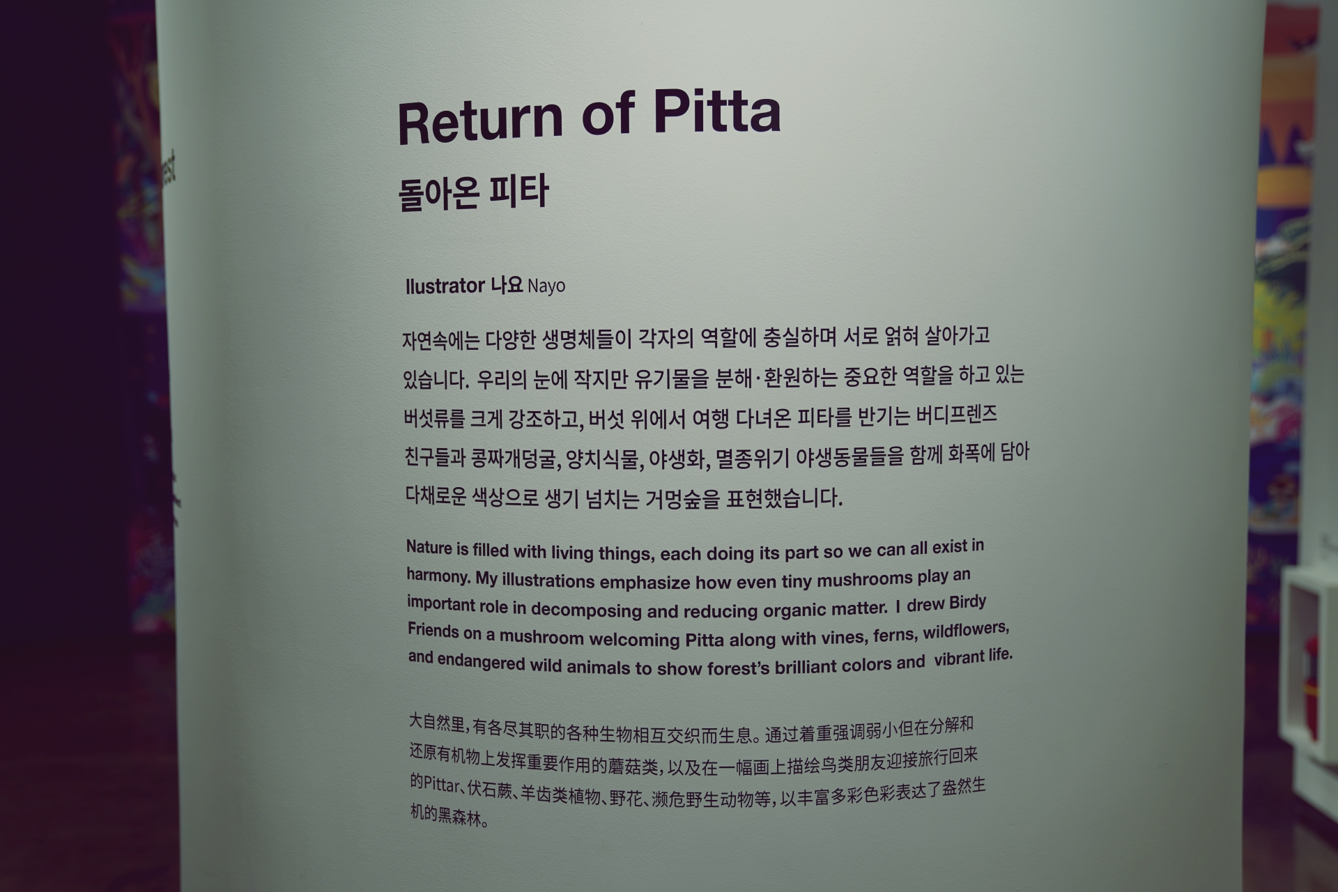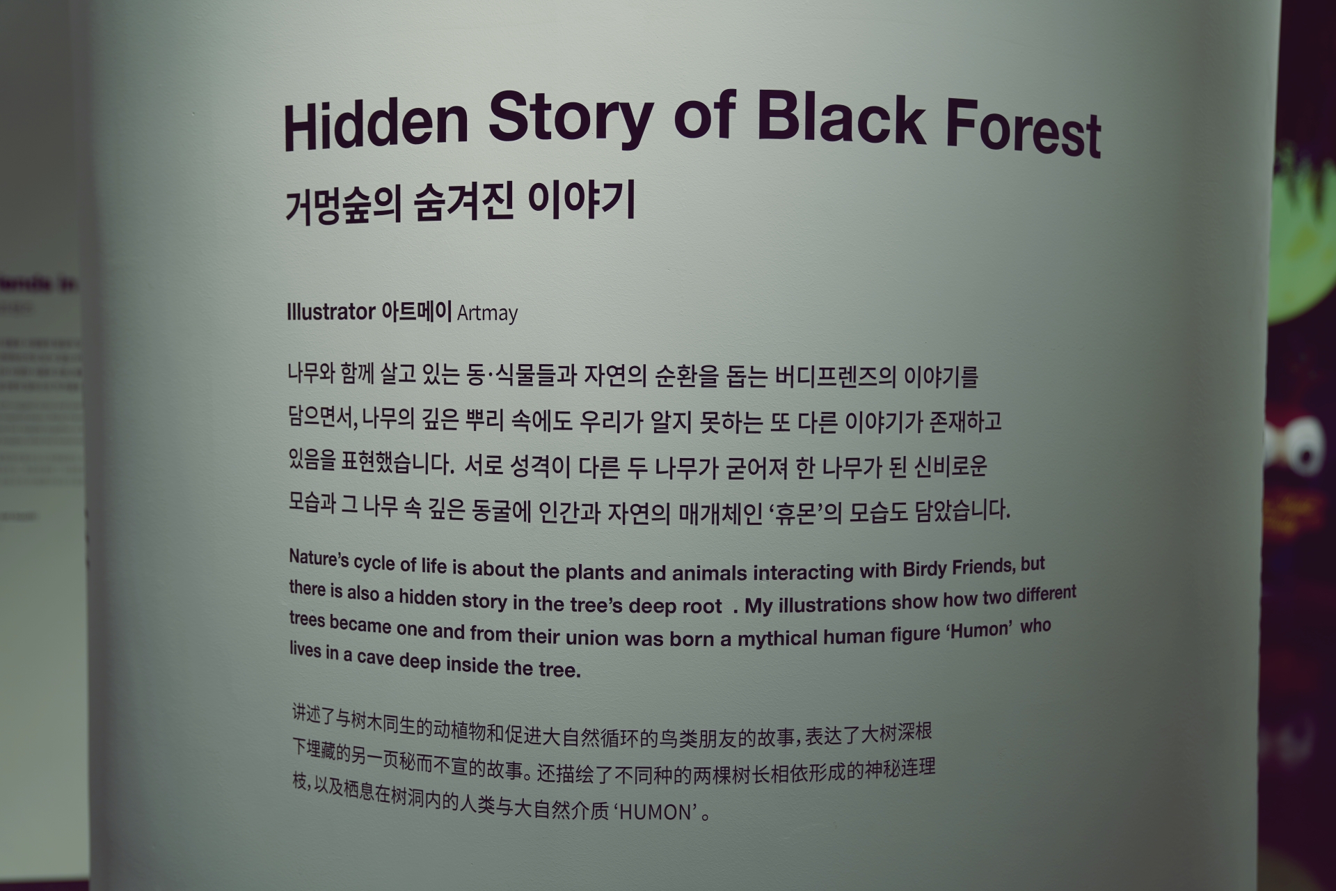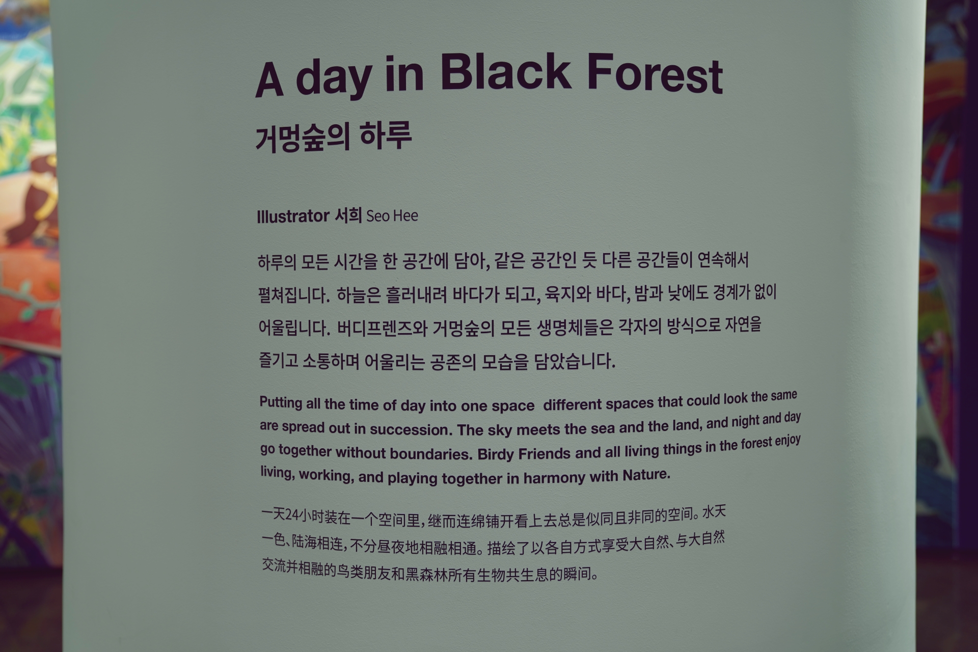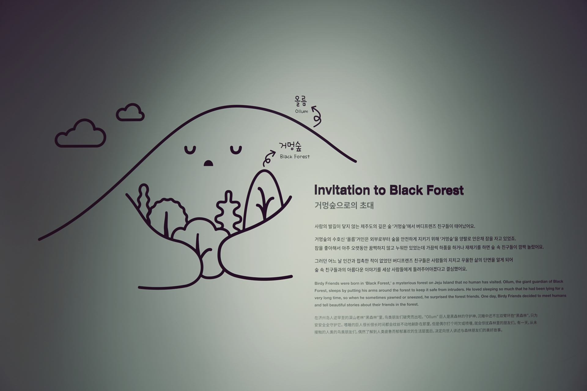 거멍숲 속 버디프렌즈는 제주의 자연을 일러스트 작가들과 함께 상상하여 만든 공간이에요. 작가마다 다른 기획과 그래픽 스타일로 기존에 볼 수 없었던 새로운 차원의 전시를 선보이고 있답니다. 각 작품마다 설명도 자세히 되어 있으니 그림과 설명을 번갈아보며 숨겨진 제주의 모습을 찾아보세요!