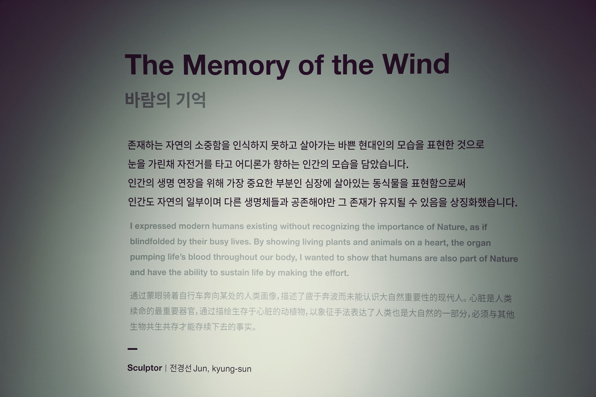 또한 인간도 자연의 일부이며 다른 생명체들과 공종해야만 그 존재가 유지될 수 있음을 상징하고 있는 '바람의 기억' 작품은 무언가 깊은 생각에 빠져들게 했습니다. 단순한 전시가 아닌 관람을 통해 나와 함께 존재하고 있는 자연의 소중함을 느낄 수 있는 곳이었습니다.