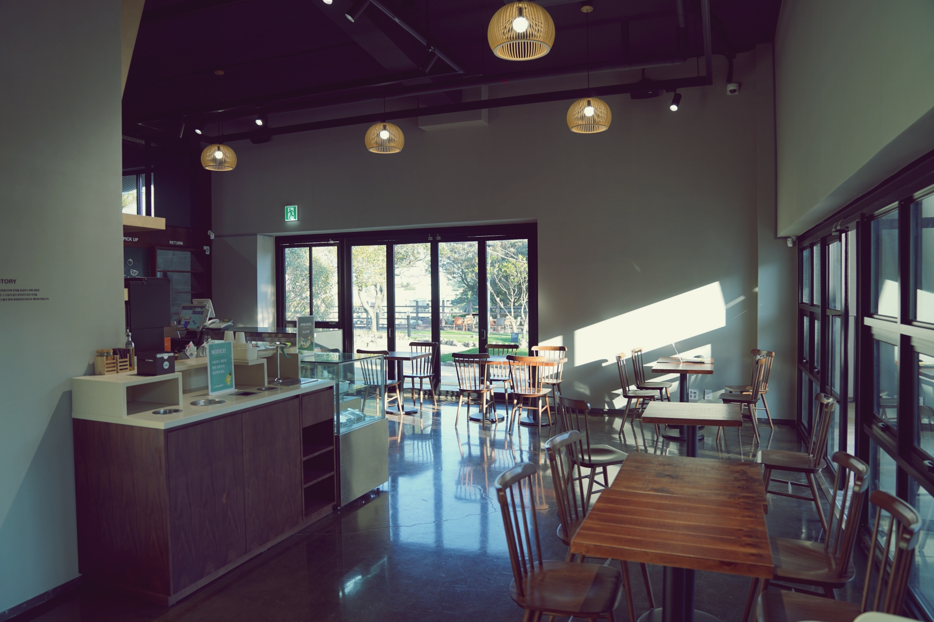 카페는 제주에서 생산된 식자재와 건강한 레시피로 만든 화덕피자와 제주 자연의 향을 다양하게 즐길 수 있는 음료 및 디저트를 즐길 수 있는 공간입니다. 겨울에는 조금 춥지만 야외에 준비된 테이블에서도 휴식을 즐길 수 있는 환경으로 구성되어 있답니다.