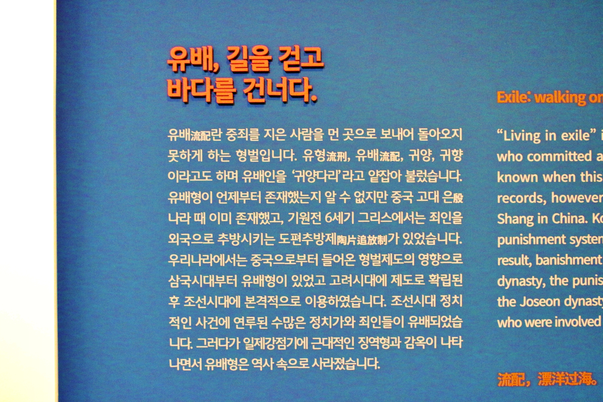 전시는 크게 3부로 구성되어 있으며 제주라는 낯선 땅에서 느끼고 살아가야 했던 유배인들의 모습을 살펴볼 수 있습니다. 제주는 조선시대 가장 많이 유배인들이 왔건 제1의 유배지였으며, 조선 제일의 왕뿐만 아니라 사대부 양반을 비롯하여 중인, 평민 등 계층은 물론 남녀노소를 따지지 않았다고 합니다.