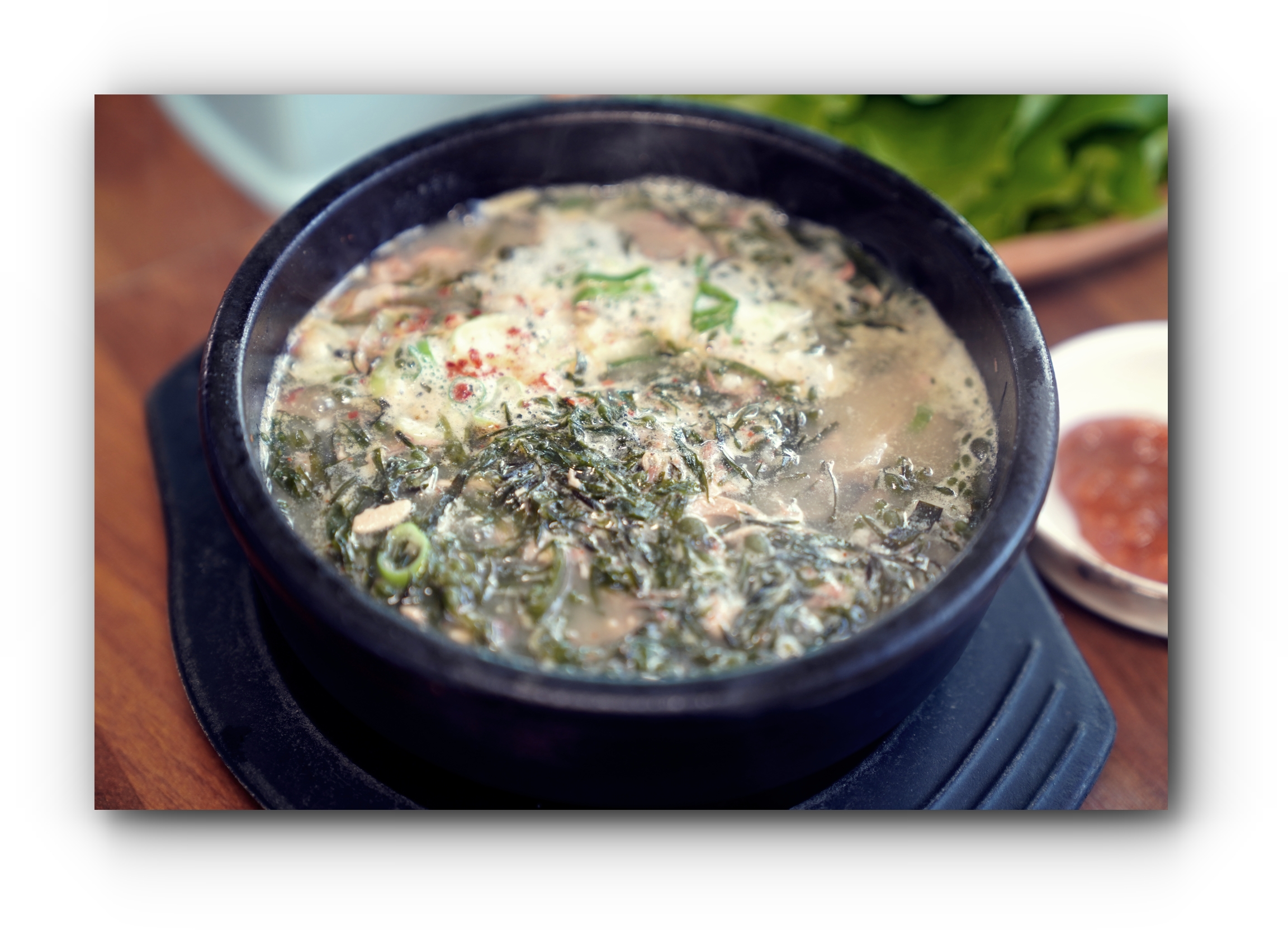 저는 사실 밥을 먹을 때 서브메뉴로 주문을 했지만 - 모든 메뉴는 2인 이상 주문이 가능하지만 몸국은 1인 주문이 가능하기에 - 혼자 식당을 찾았을 땐 몸국을 먹기 딱 좋습니다. 두루치기 맛집 뿐만 아니라 몸국맛집이라고 불러도 될만큼 성산흑돼지두루치기의 몸국맛은 그 맛이 정말 뛰어납니다. 제주어로 '정말 베지근하다'라고 표현하니까요!